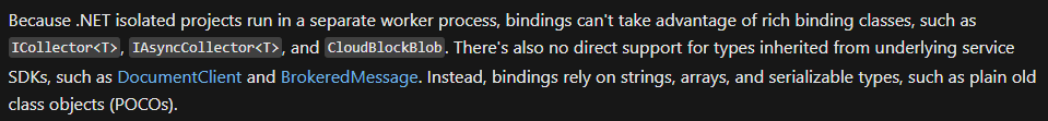 I hope functions with other bindings are as easy to convert and can’t wait to see what other changes are added to Azure Functions in the future with the Isolated process, .NET 6 and Functions v4.