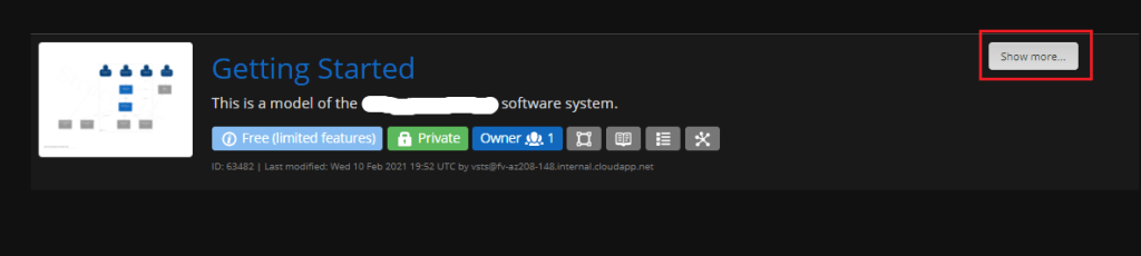 The details for the workspace can be found on your Structurizr page by selecting ‘Show more’.